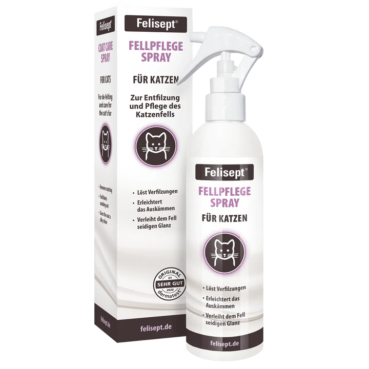 Felisepti karvahooldussprei võitleb bioloogiliselt matistunud karvaga ja katab iga üksiku karva spetsiaalse kaitsekilega, mis tõrjub mustust, tolmu ja vett. Niimoodi on tõhusalt ära hoitud muidu tavaline karvade pussaminek. Karv muutub kergemini kammitavaks ja sellele annab siidise läike spetsiaalne hooldusvahend. karvahooldussprei on lahustivaba, eriti leebe ja ei sisalda alkoholi ega silikoone. Pumbapihusti võimaldab ideaalset ja peent jaotamist karvale.
