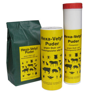 Rakendus: Puistatakse pesad, õrreed, põrandad, praod, nakatunud alad jne. Hexa-Vetyl-Powder ei jäta lõhna ega maitset ning tolmub peeneks ja ühtlaseks tolmuks.