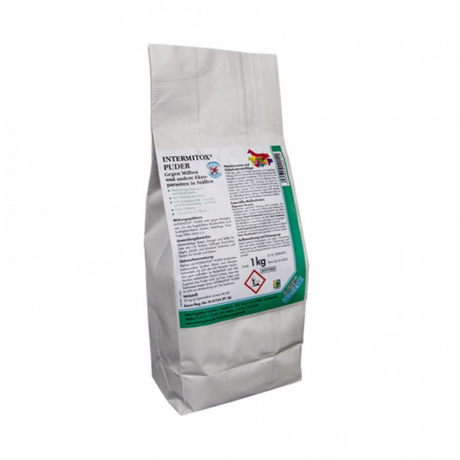 Rakendus: Puistake nakatunud alad Intermitoxi pulbriga, eriti pragusid ja vahesid, kuna parasiitidele meeldib seal viibida. Vajadusel korrake rakendust kolme nädala pärast. Veenduge, et ei kanna pulbrit toidule, joogiveele ja munadele! Intermitoxi pulber ei ole ette nähtud kasutamiseks loomadel/lindudel.