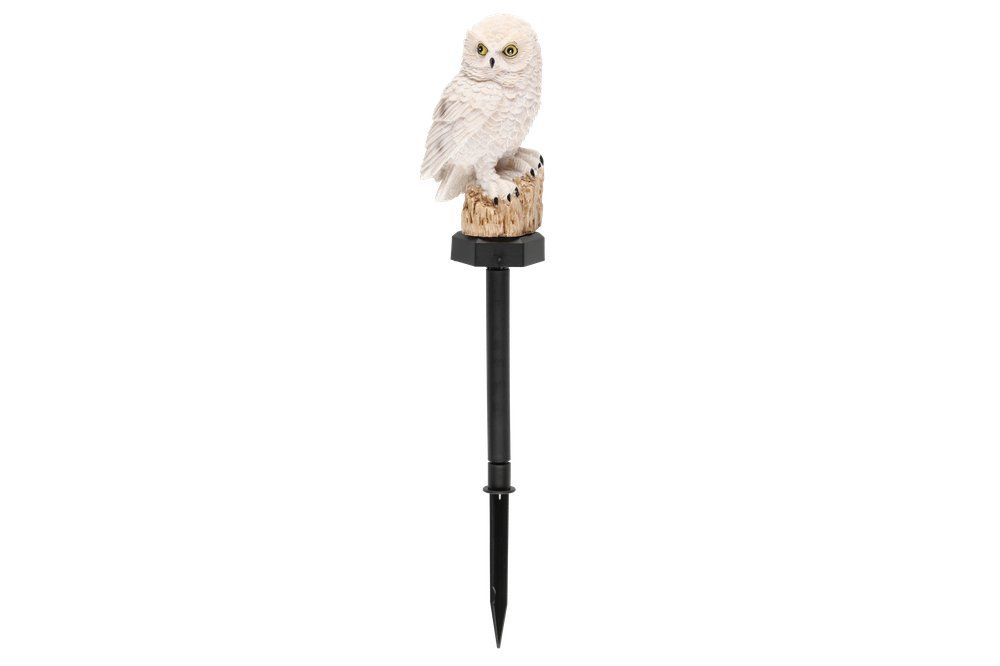 Maasse torgatava vardaga varustatud aialamp. Õhtuhämaruses paistab valgus öökullist läbi. 1 x soe valge LED. Amorfne päikesepaneel 4,5 x 5 cm. Aku 1,2 V AAA mAh NI-MH. Sisse/välja lüliti.