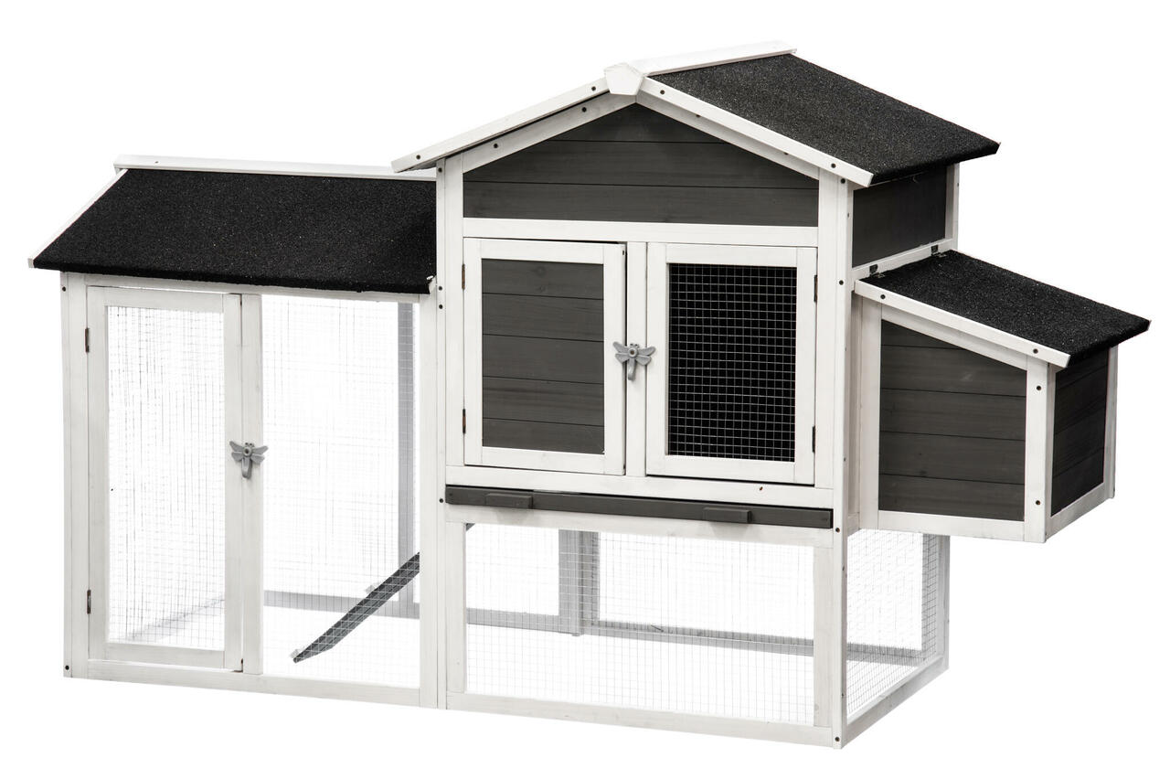 Toodetud värvitud kuusepuust. Ilmastikukindel viltkatus. Nii õueala, välimine pesakast kui ka tegelik kanakoda koos uste ja luukidega lihtsaks puhastamiseks ja munade kogumiseks. Lihtne juurdepääs kaldteele kanadele, et nad saaksid katusega majaosast vabalt sisse ja välja liikuda. Sobib 4-6 kanale. Väga lihtne kokku panna.