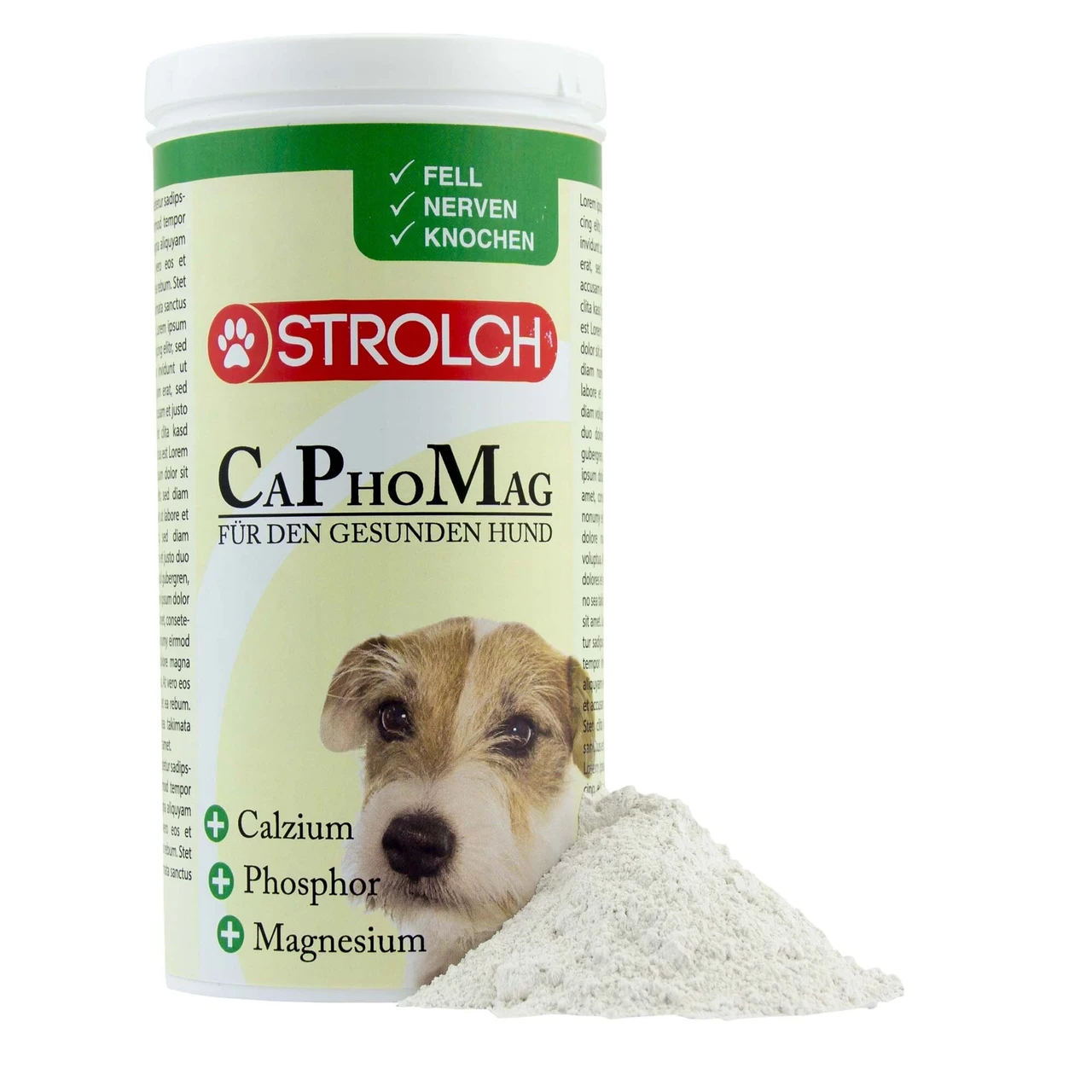 Strolch CaPhoMag on oluliste mineraalide kaltsiumi, fosfori ja magneesiumi pulbriline allikas. Näiteks umbes 50% keha magneesiumist on loomade luudes seotud magneesiumfosfaadina. Kuna luu struktuur on pidevas muutumises isegi vanematel loomadel, on koertel nende ainete järele pidev vajadus. Kaltsium, fosfor ja magneesium on loomaorganismi jaoks mitmel viisil silmapaistva tähtsusega. Strolch CaPhoMagis on need mineraalid ideaalses vahekorras.