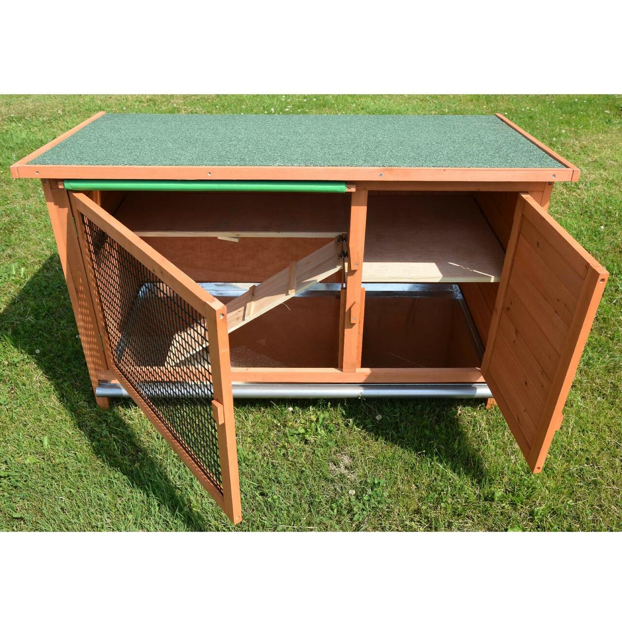 Kahe täiendava korrusega, mis tagab suurema liikumisvabaduse. Kahe uksega, eraldi avamiseks. Esiosa kvaliteetse võre ja rullmatiga tuule ja külma eest. Väljastpoolt