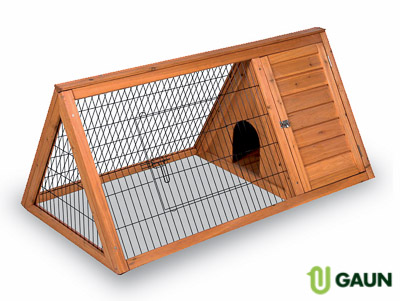 Jänesemaja aiaga, kahe uksega (üks pesa ja teine peapuuri jaoks). Seda saab vastavalt vajadusele hõlpsasti liigutada.