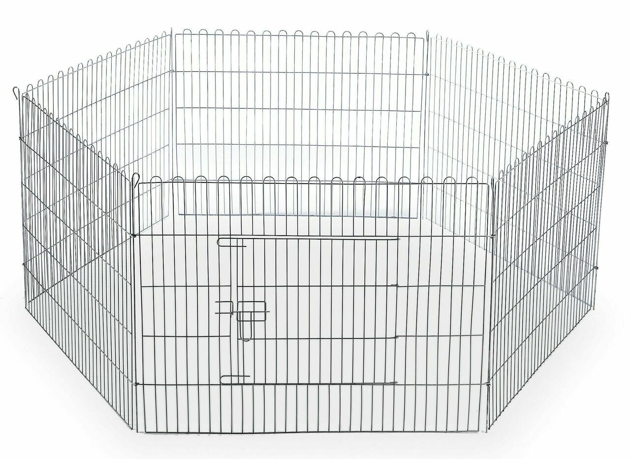 Metalltraadist paneelidest kuuenurkne puur väikeloomadele. Üks paneel on uksega.