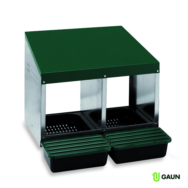 Pesakast on valmistatud plekist. Pesakasti põhi on plastikust ja koos avatava kaanega munasahtliga. Kaks sektsiooni.