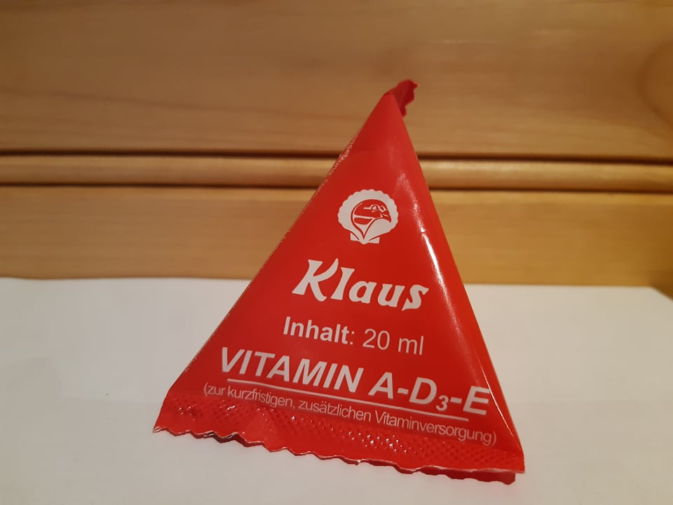 Vitamiin – A – D3 – E täiendavaks, lühiajaliseks vitamiinivaruks – vees lahustuv, võib anda nii joogivee kui ka söödaga.