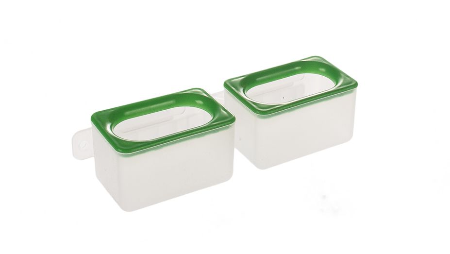Plastikust sööda/joogi anum. Kaks topsi koos seinakinnitusega.
