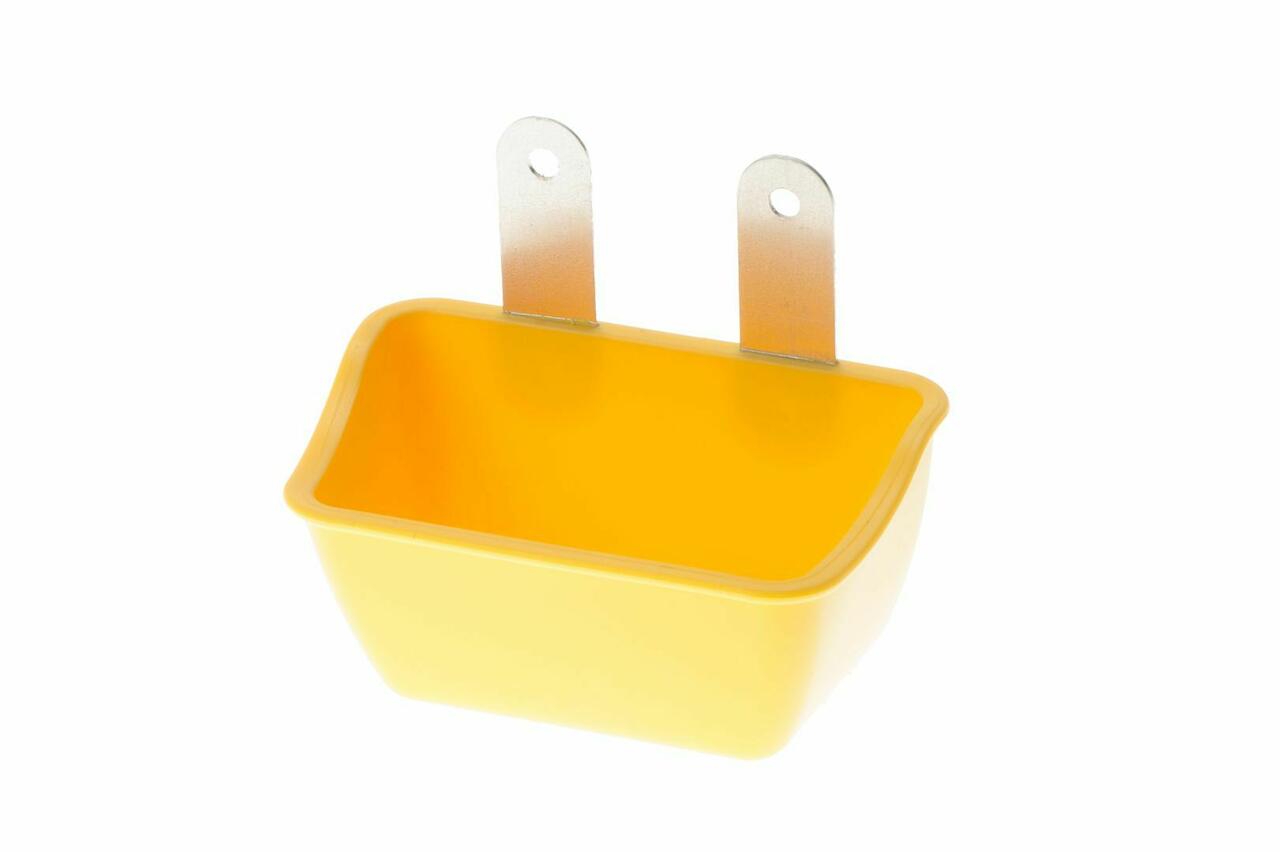 Plastikust sööda/joogi anum alumiiniumist riputuskonksudega. Konksudel on avad kruviga kinnitamiseks. Ideaalne transpordipuurides kuna saab stabiilselt kinnitada.