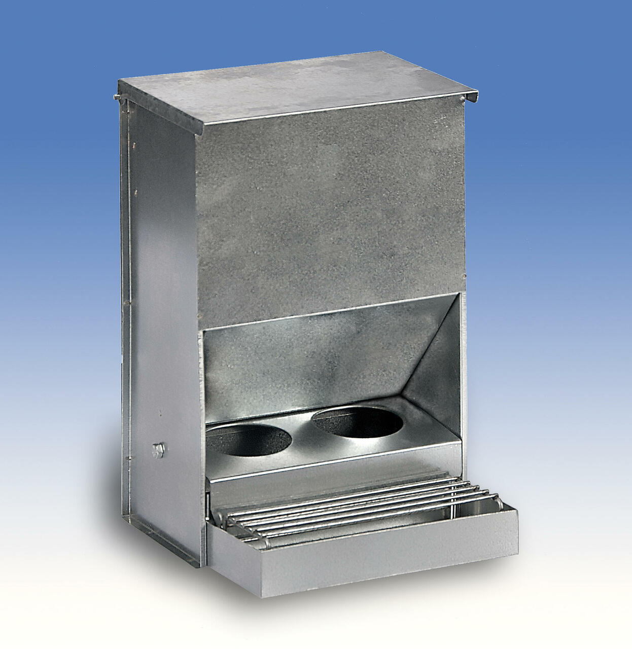 Stabiilne metallist automaatne söötur, millel on 2 ava (läbimõõduga 5 cm) - ideaalne suuremate lindude jaoks.
