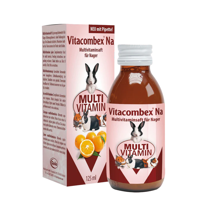 Vitacombex Na on närilistele mõeldud täiendsööt. See maitsev multivitamiinimahl toetab optimaalset vitamiinide omastamist. Seda võib anda iga päev toidu või joogiveega. Vitamiinilisandid aitavad toetada näriliste heaolu. Vitamiinide lisamine võib olla eriti kasulik sellistes olukordades nagu kliimamuutused või toitumise muutused. Veenduge, et teie näriline saaks tasakaalustatud toitu.