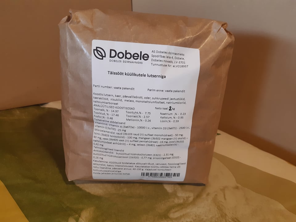 Koostis: lutsern, päevalillešrott, kaer, nisukliid, mais, nisu, kaerakliisid, melass, kaltsiumkarbonaat, rapsiõli, naatriumkloriid.