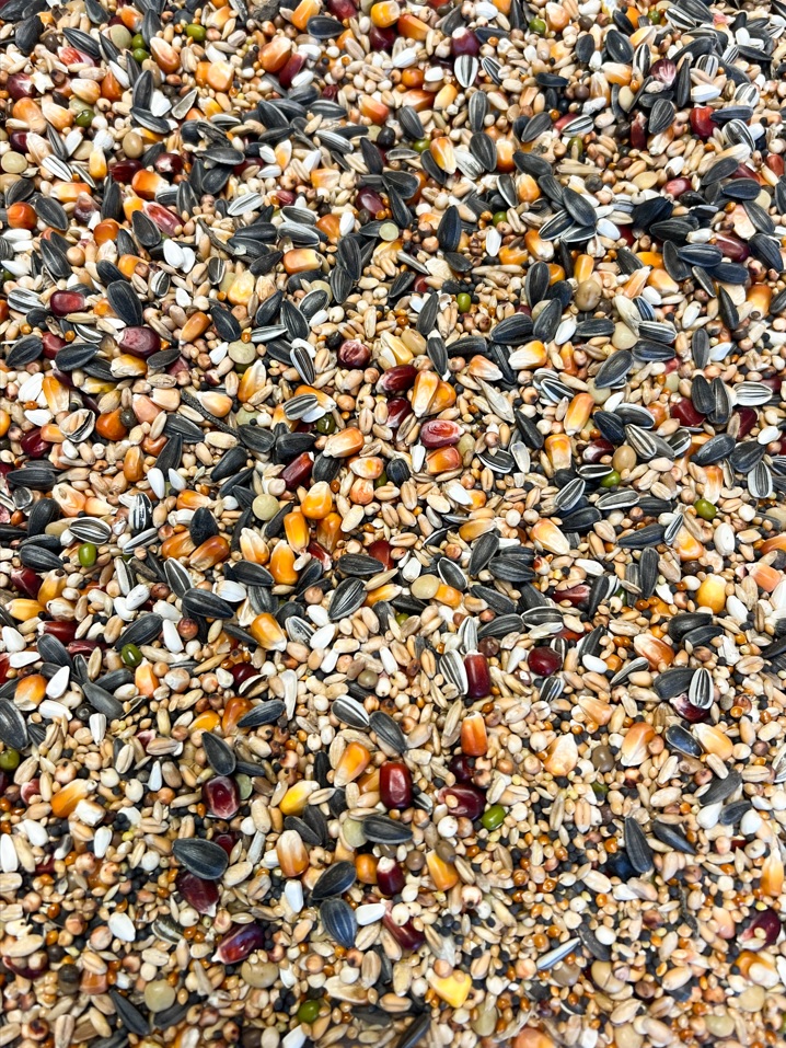 Koostis: Mais 32%, Sorgo 15%, Nisu 14%, Päevalilleseemned 6%,